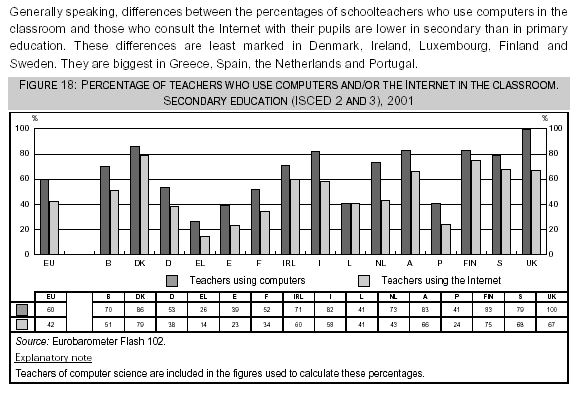 Ποσοστά καθηγητών ΔΕ που χρησιμοποιούν ΤΠΕ και διαδίκτυο στο